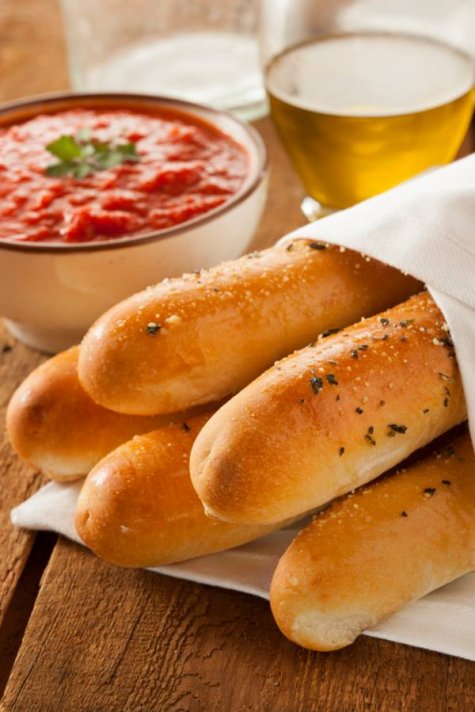 Remove bread sticks from oven and immediately brush with butter and season with garlic salt